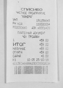 Вы можете оплатить покупку при доставке, рассчитываясь с курьером банковской картой через платежный терминал. После оплаты товара при получении заказа покупателю предоставляется кассовый чек и товарный чек. Важно: оплачивать товар банковской картой имеет право только владелец банковской карты2.3. Оплатить товары Частного предприятия "Манера" Вы можете через систему "Расчет" (ЕРИП), в любом удобном для Вас месте, в удобное для Вас время, в удобном для Вас пункте банковского обслуживания – интернет-банке, с помощью мобильного банкинга, инфокиоске, кассе банков, банкомате и т.д. Совершить оплату можно с использованием наличных денежных средств, электронных денег и банковских платежных карточек в пунктах банковского обслуживания банков, которые оказывают услуги по приему платежей, а также посредством инструментов дистанционного банковского обслуживания.